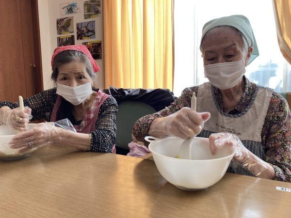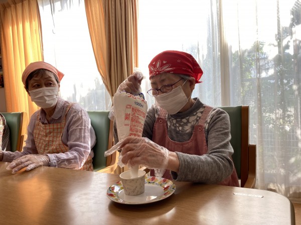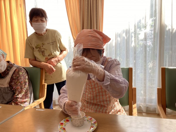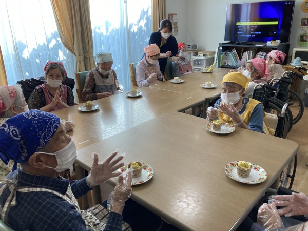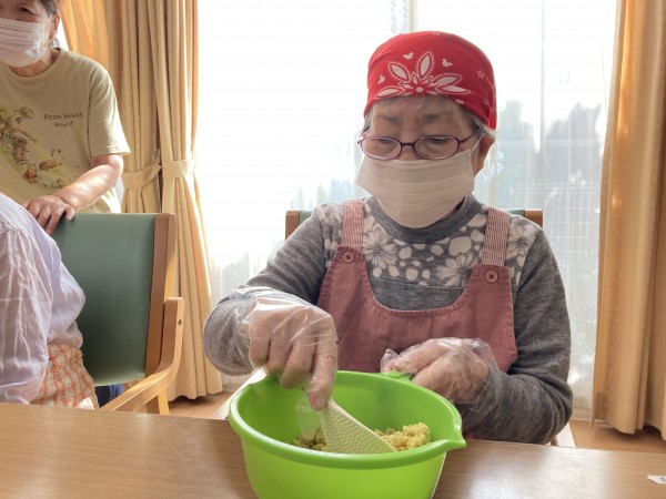 「おやつレク!さつま芋ンブランケーキを作りました」~グループホームみんなの家・横浜今宿の介護ブログ~