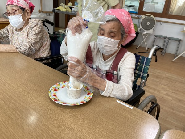 1階と2階のご利用者様合同での「おやつレク」を行いました!