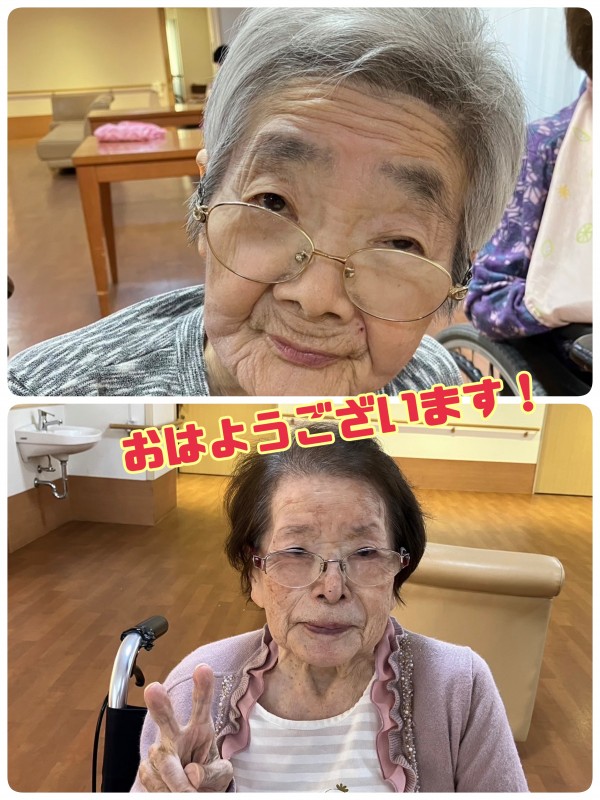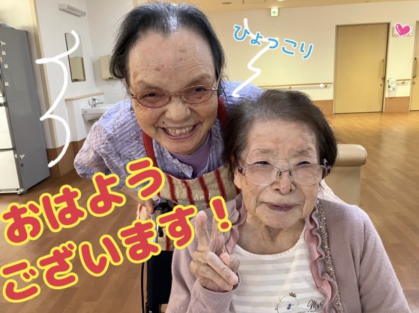 ご入居者様が、元気な笑顔でお部屋からリビングにいらっしゃいます。