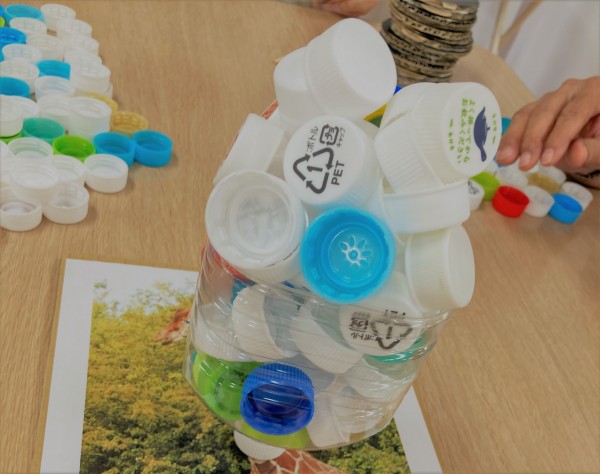 次は「パート4」です。割りばし1本を使いうまくキャップに入れてそのままボトルの中に入れていきます。これはちょっと大変でしたが2回目からやると途端に動きが早くなっていました!