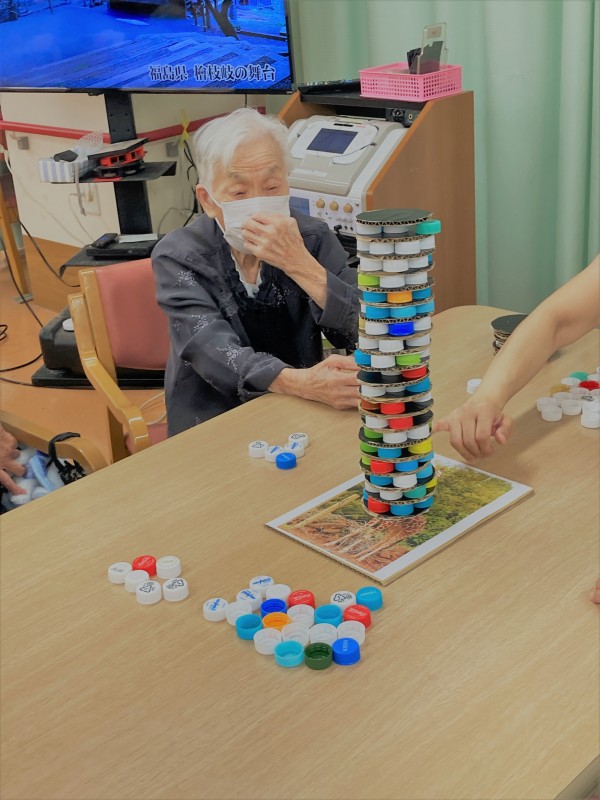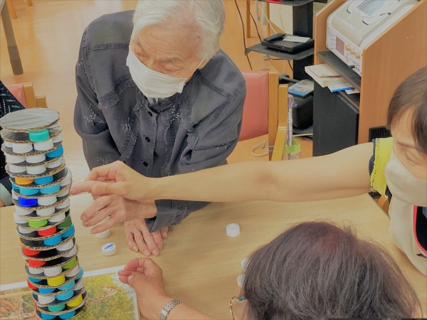 最後に「パート8」!以前にもやりましたねー・・・キャップを七つ円に乗せ終えたら一つずつキャップを取っていくゲームですね。このゲームもまたとても大変ですが、やり終えた後の感触がとてもよかったそうです!