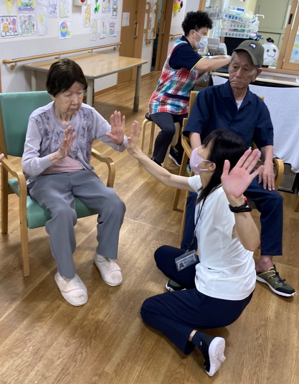 職員も行ないましたが先生から「身体固いね」と感想を述べており利用者様笑っておられました(;^ω^)