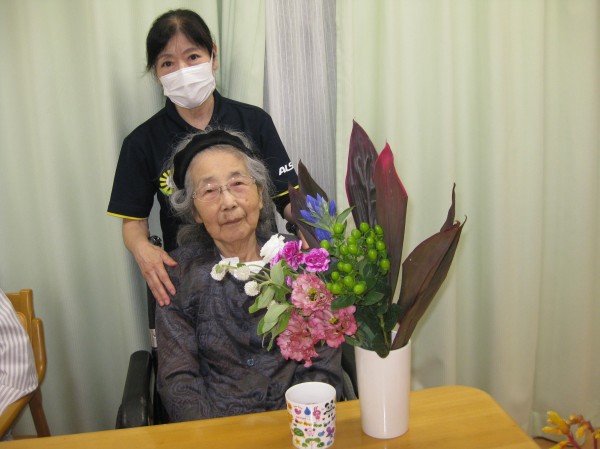 お花があるから嬉しいよね?と伝えると「そうね・・ 綺麗だもんね、お花はね?」と喜ばれていました。