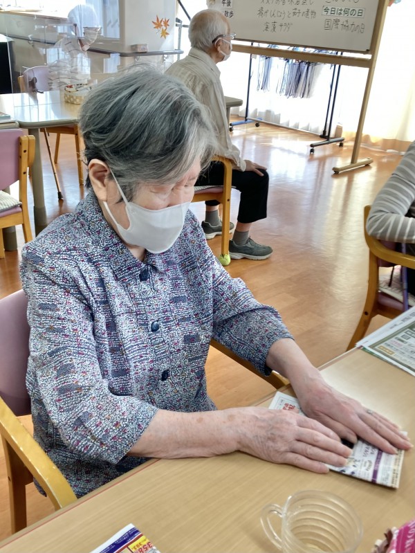 10分くらい体を動かしてから、今月の歌「里の秋」、「旅愁」を歌って、おやつとなりました。