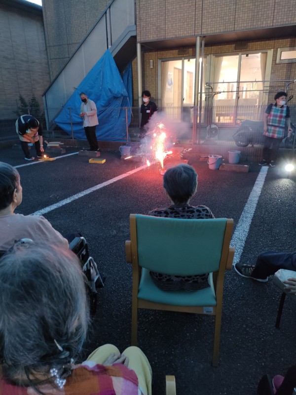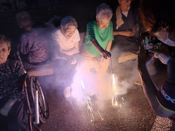 隣のグループホームみんなの家久地と久地2の合同花火大会を行いました。