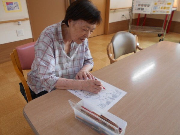 桃フロアは塗り絵をしながらゆったりとした時間を過ごしました~