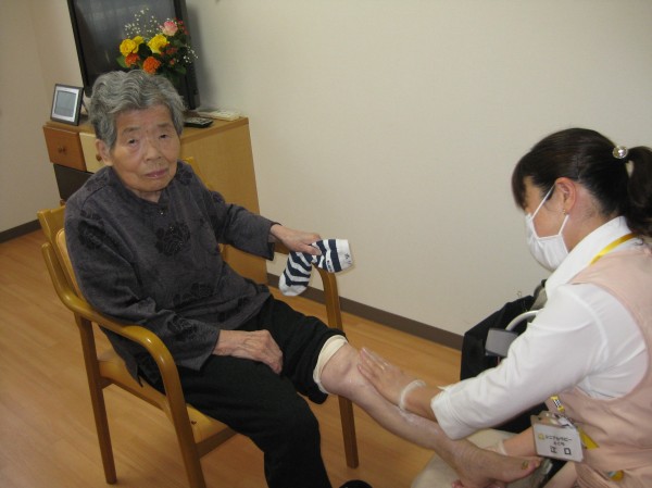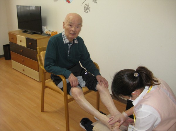 お顔や足の施術を受けておられます。気持ちいです。ありがとうございますと、仰られています(*^_^*)