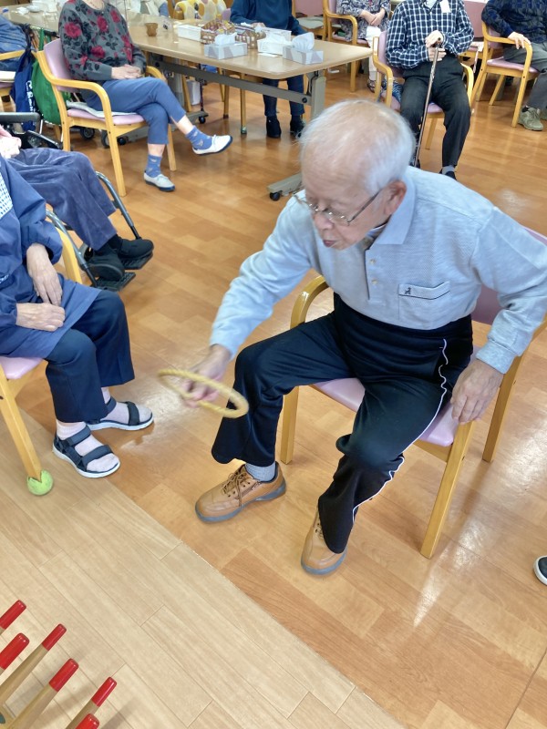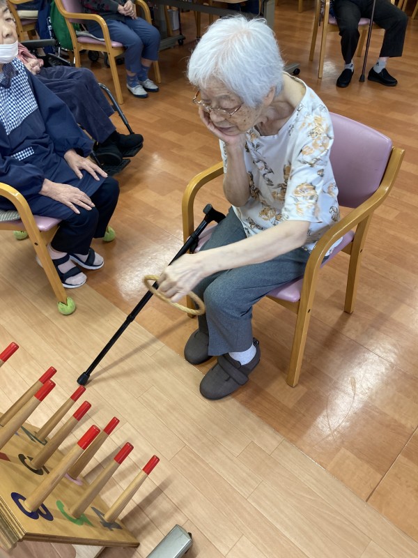 今日は、輪投げです。1人9投投げて、台にある点数の合計点での勝負です。