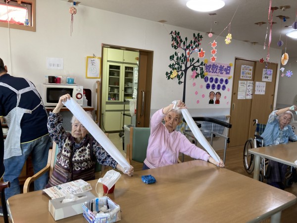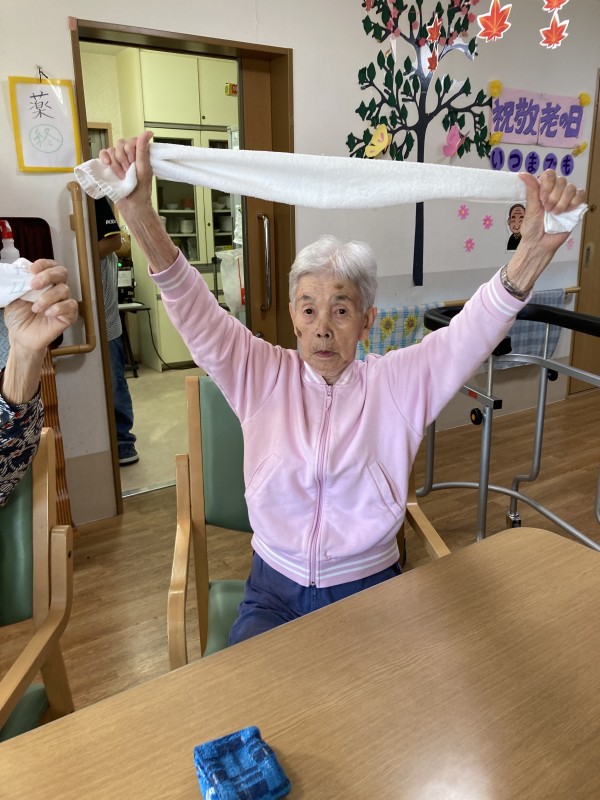 秋と言えば、スポーツの秋と言う事で、タオルを使ってちょっとした運動をしています。