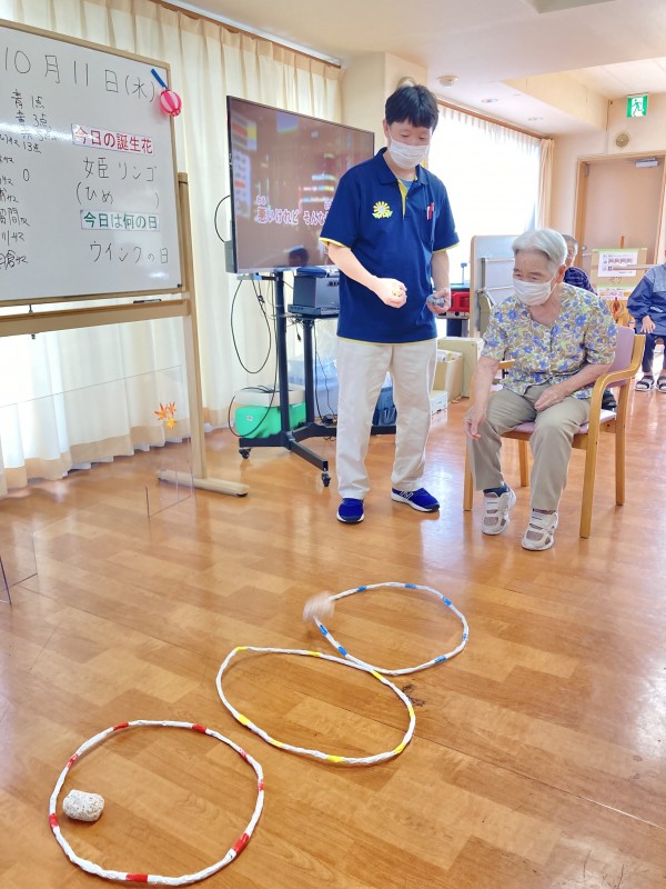 この後、音楽レク「紅葉」を皆で体を動かしてから歌を歌って、おやつとなりました。