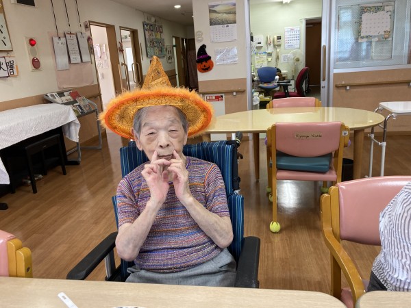 ホームも少しだけ、ハロウィーンの飾り付けをしたので、入居者様もちょこっと変身です。