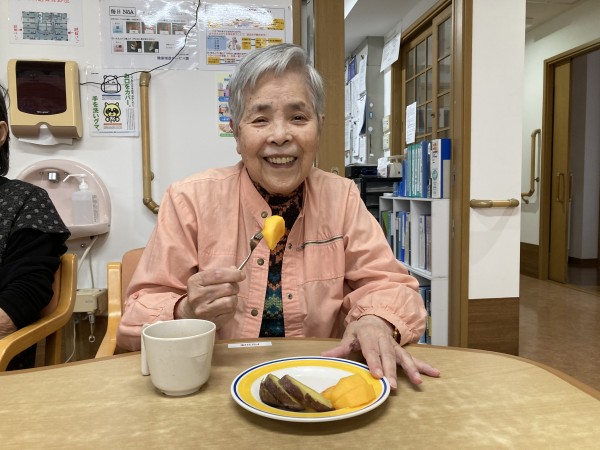 今日のおやつレクは、秋の味覚を味わって