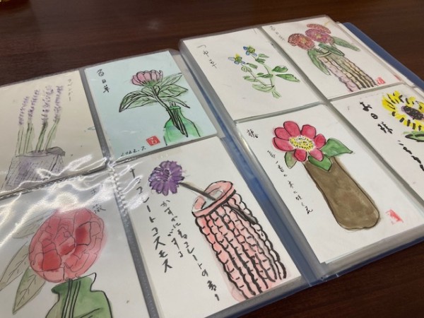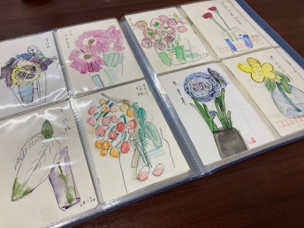 職員達は家で咲いた花を施設に持参し、画伯に描いてもらうのも楽しみのひとつでした
