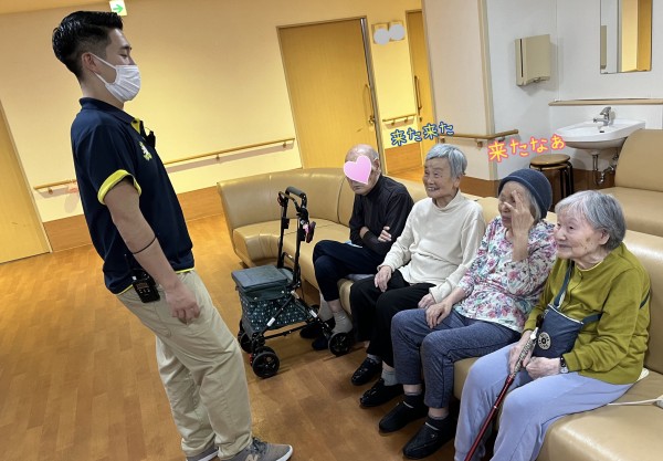 リビングでくつろぐ皆さまの前に現れた門田くん。