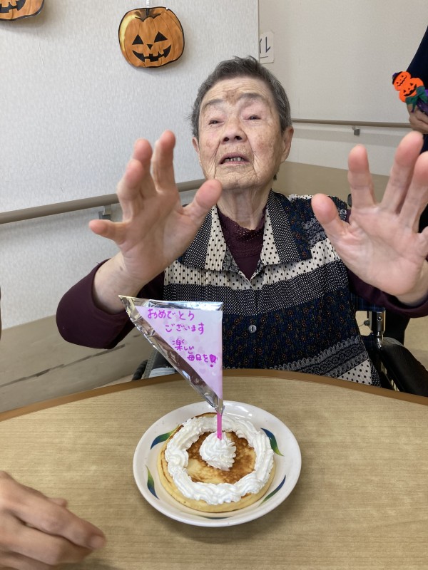 お仲間からの祝福を受けてとても喜ばれている利用者様、、、