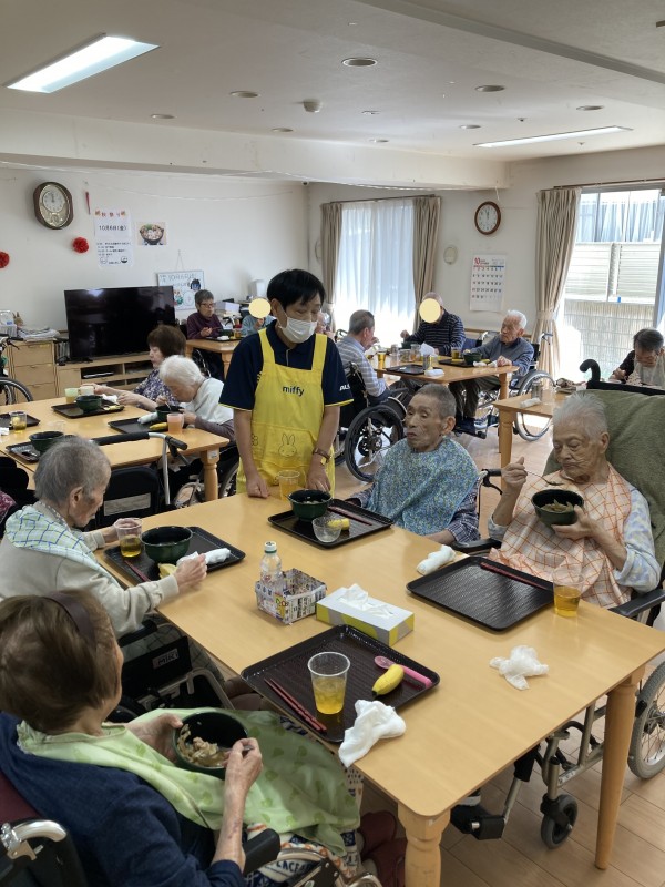 お昼には秋祭りなので各階の御利用者様が集まりお食事会