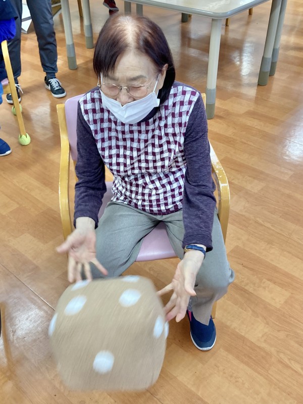 この後、「紅葉」を音楽に合わせて体を動かしてからおやつとなります。