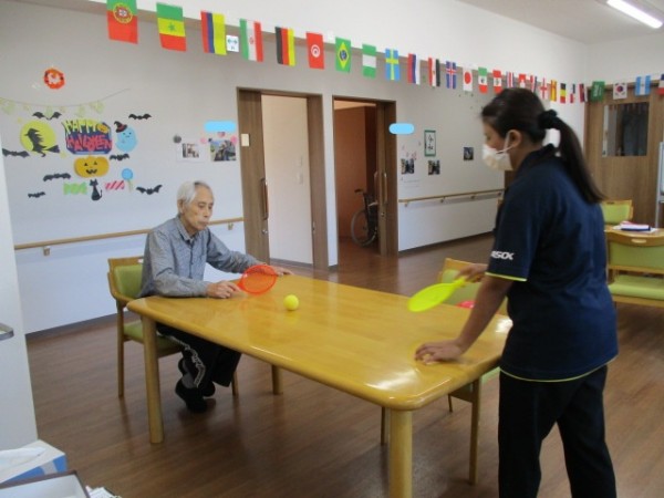 テーブルテニスのご様子です( ^ω^)・・・ 楽しそうにスタッフと遊んでおられます(*^。^*)