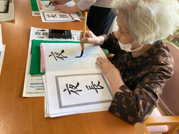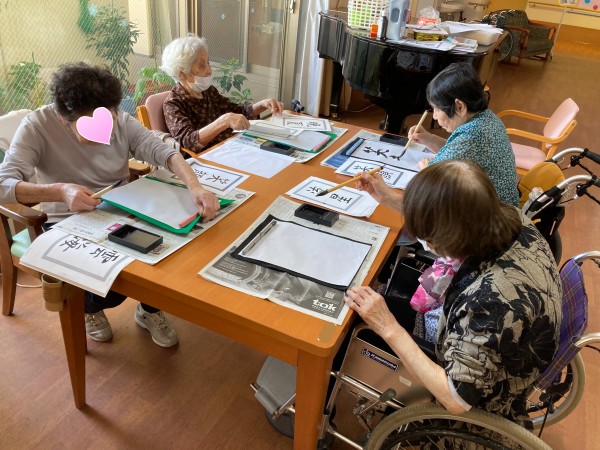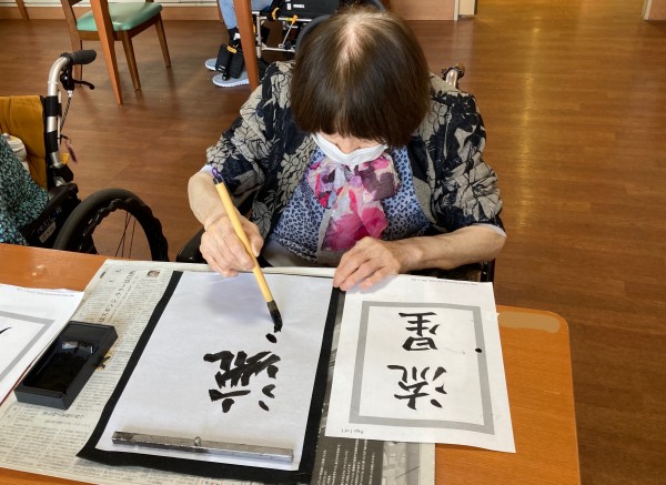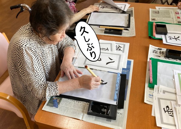 数合わせのパズルが終わり、書道に移動して来た奥様は