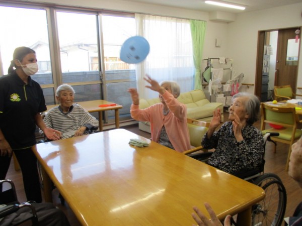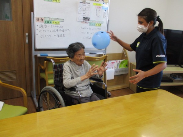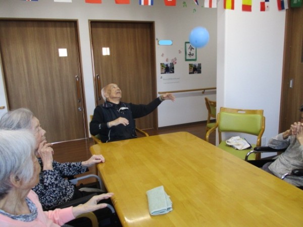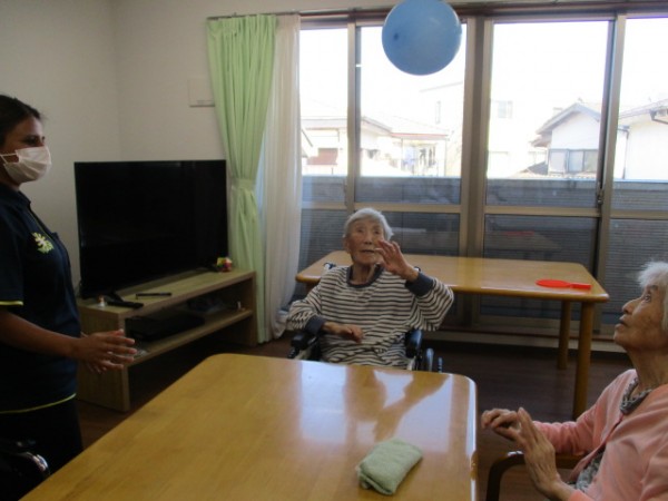 風船は柔らかいので難しそうでした! 慣れてくるとラリーが続くようになりました。