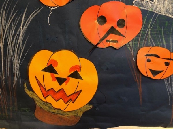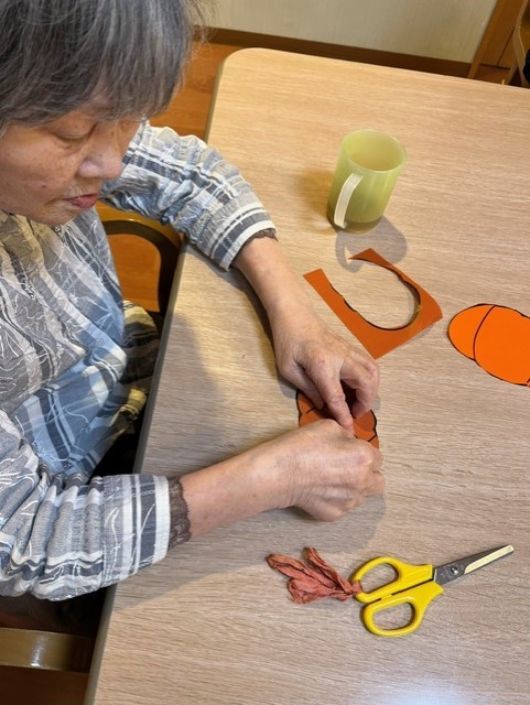 色画用紙をカボチャの形に切り抜いて、