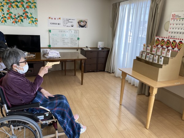 ★☆[秋祭り]射的輪投げレクリエーション高得点目指し③階2023年✨ 『みんなの家-三橋6丁目-介護ブログ』☆★