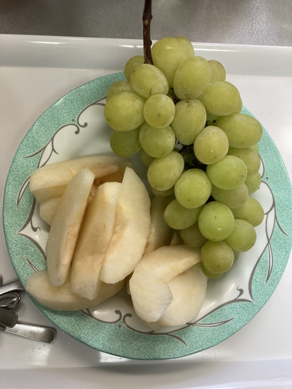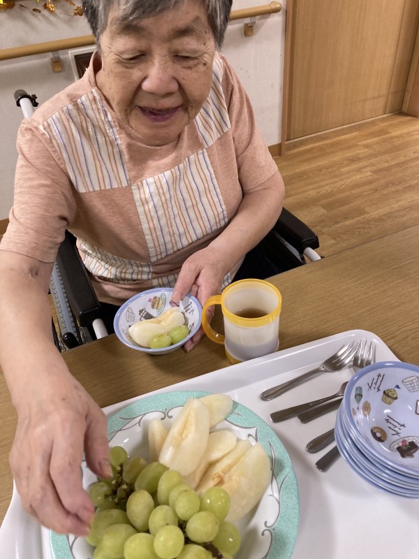 今回のフルーツは葡萄と梨でございます。柿も用意しましたがもう少し熟れてからとの事で次回に回しました。