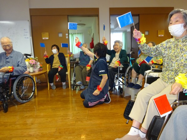 事業所の運動会とは違う種目が多く、応援合戦やフォークダンスも
