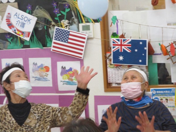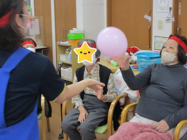 1種目目は「風船バレー」落とさずに何回続くかで勝敗が決まります。