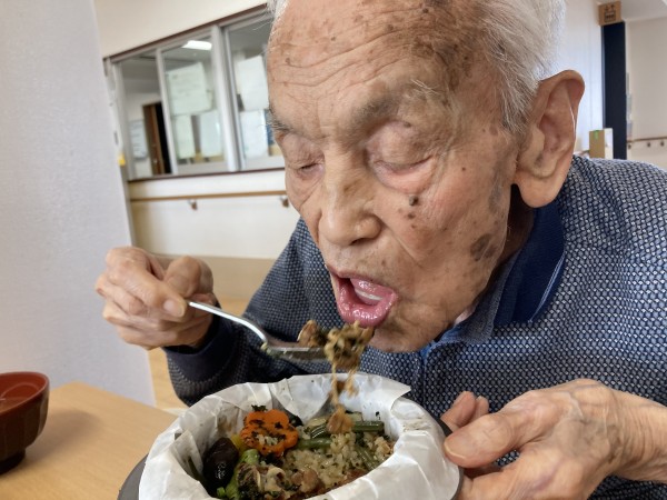 施設では、あまり食べれない特別に牛すき釜飯が提供されました。