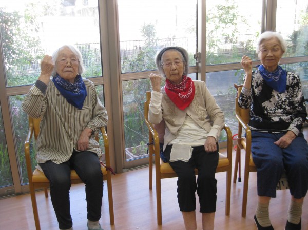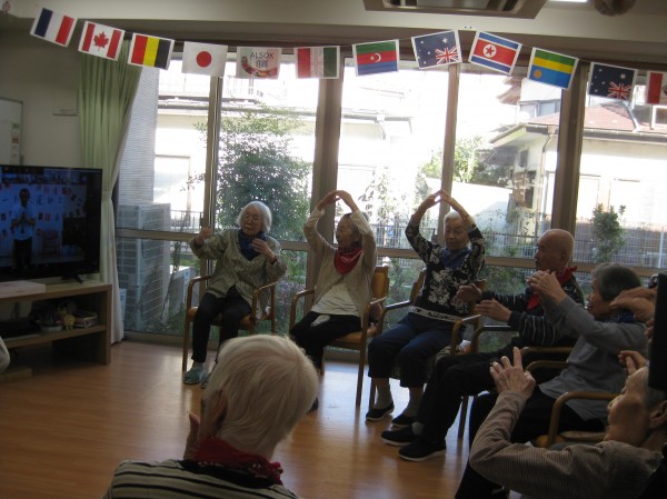 張り切って準備体操され筋肉をほぐされています(*^。^*) ニコニコされ頑張っています!(^^)! 声も出ていますね!!
