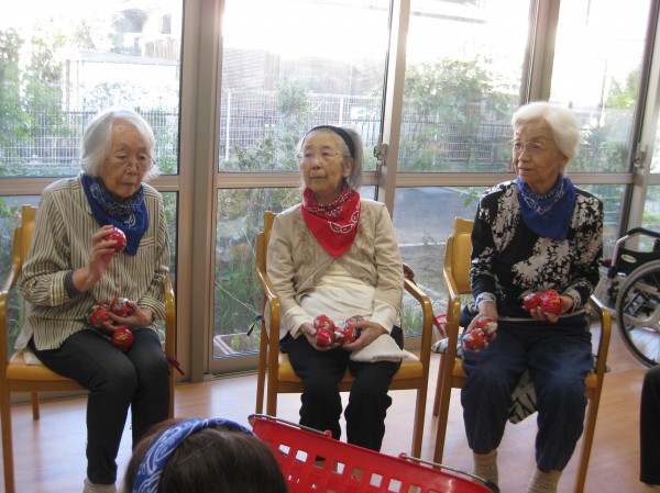 運動会の定番の玉入れです!(^^)! 音楽に合わせて籠に玉を入れていました! みなさま楽しまれていました(*^_^*)