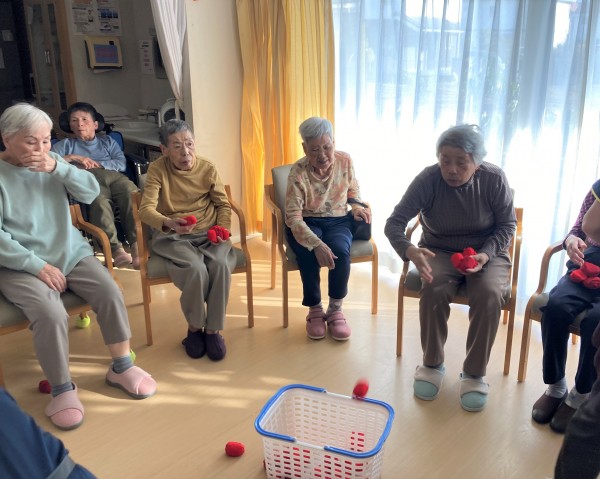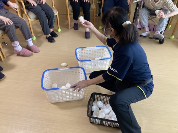 ヨ~イドンの掛け声と一緒に玉をどんどん投げ入れます。