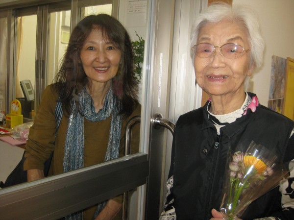 お花とお菓子をいただき感激されていました。 後で食べるのが楽しみですと話されました(*^。^*)