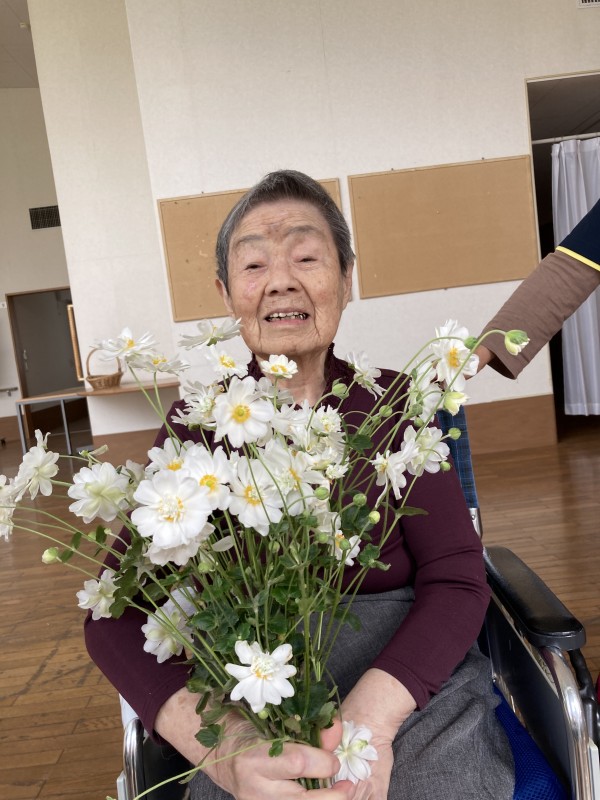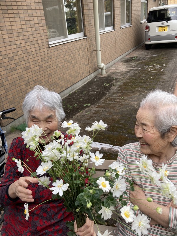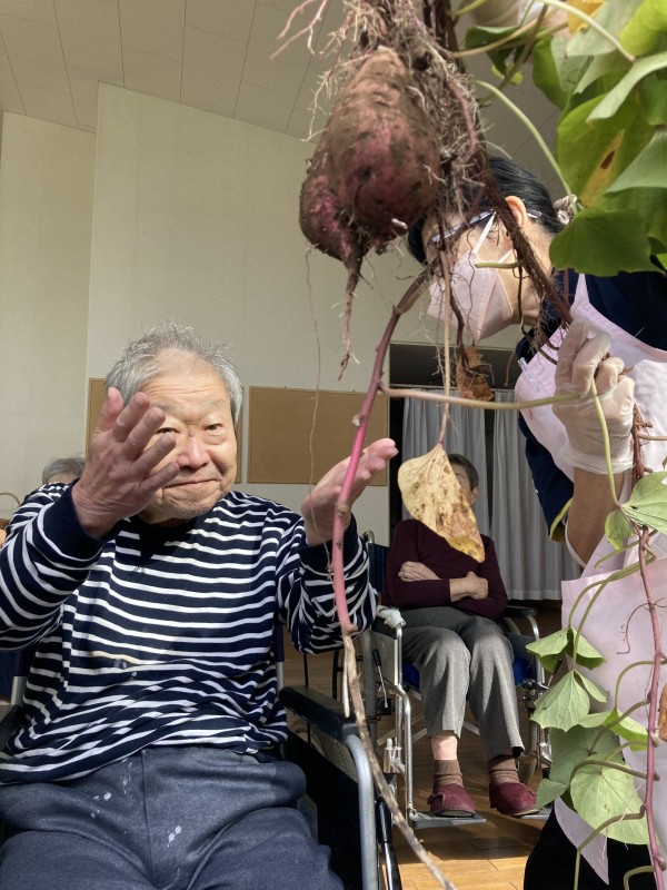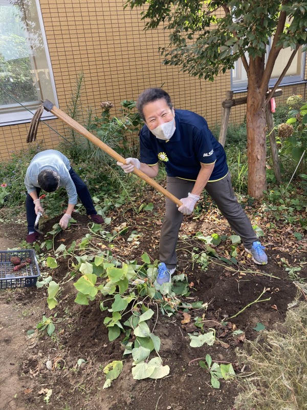 ホームの中庭ではサツマイモの収穫で大忙しです