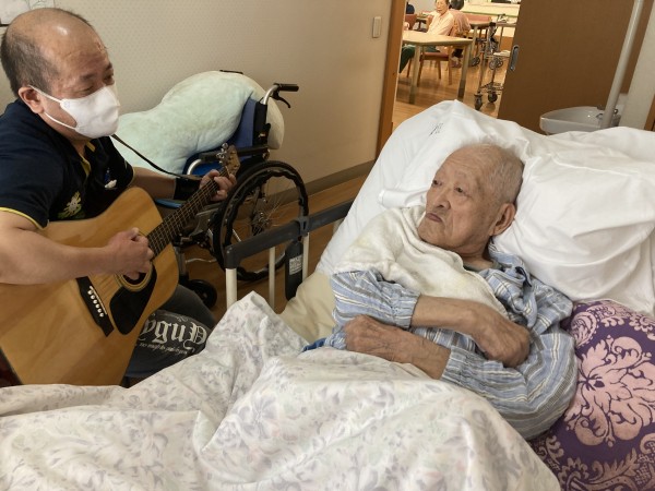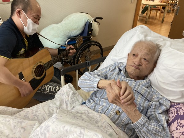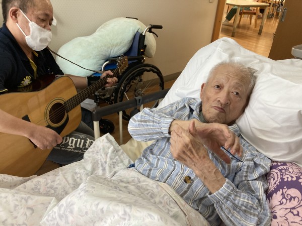 引越し前日に職員が部屋に行き、ギター演奏で歌のプレゼントを送りました♪