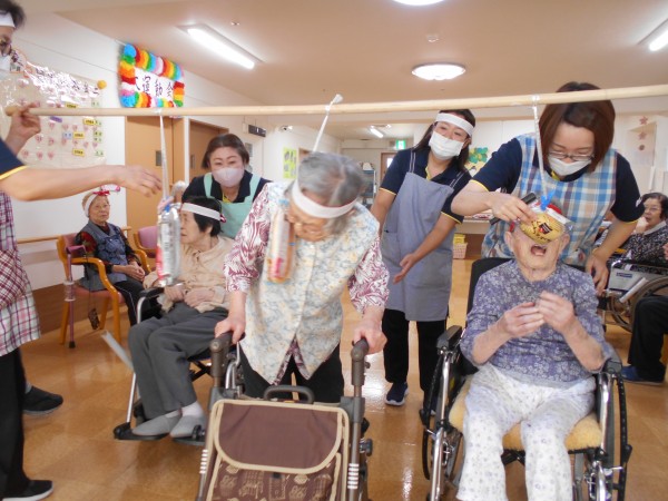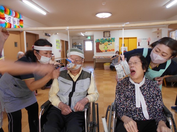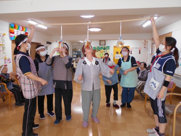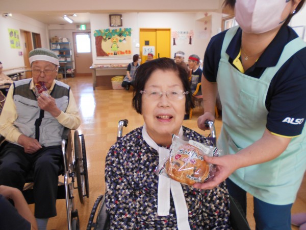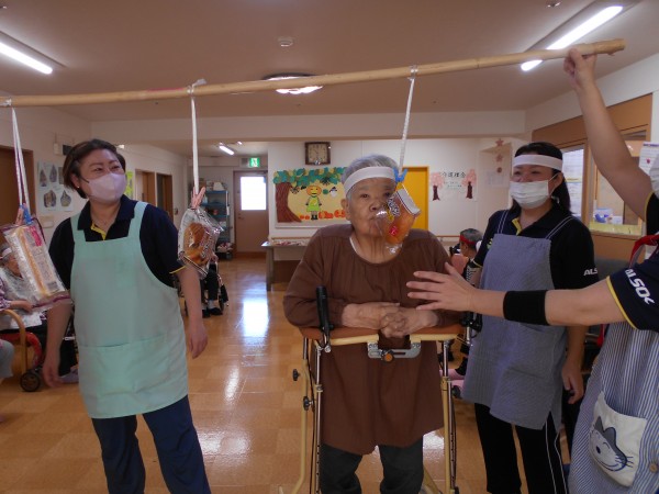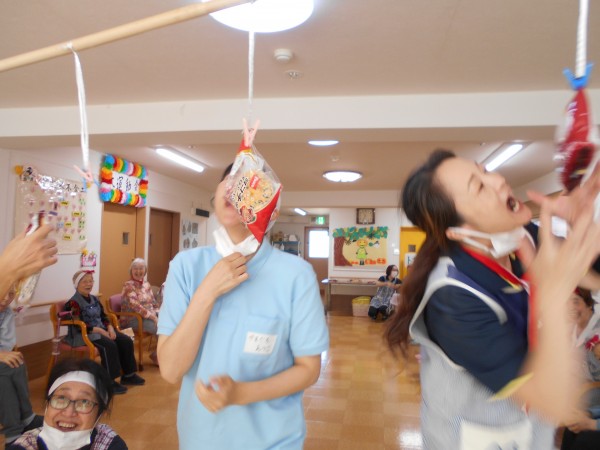 この日は看護学生の方が3人実習で来ていたのでスタッフと一緒にパン食い競争にも参加していただきました(^^♪