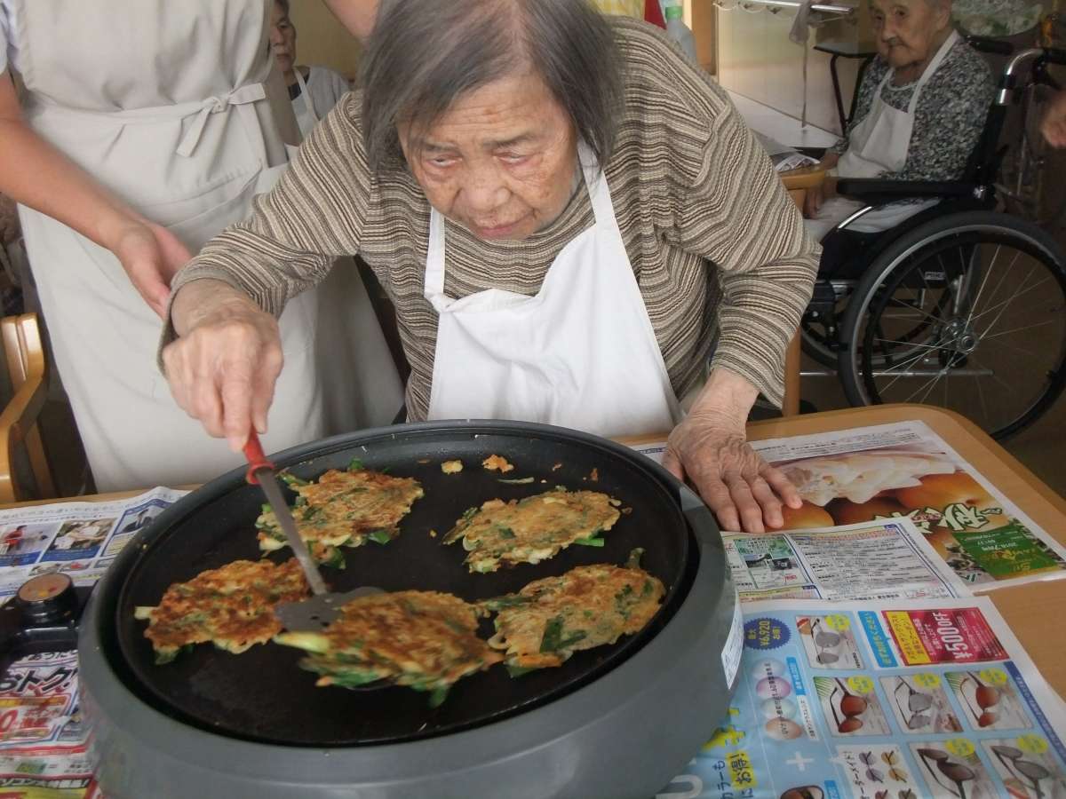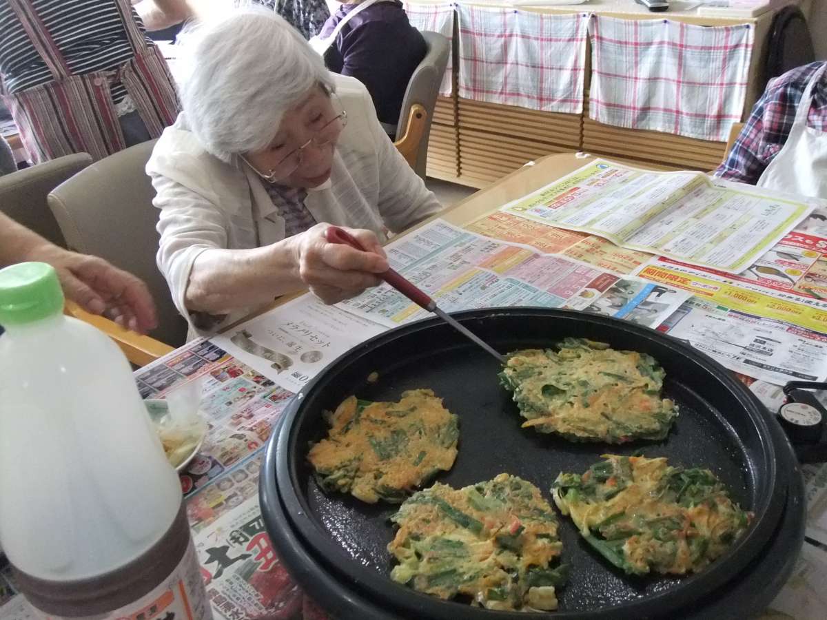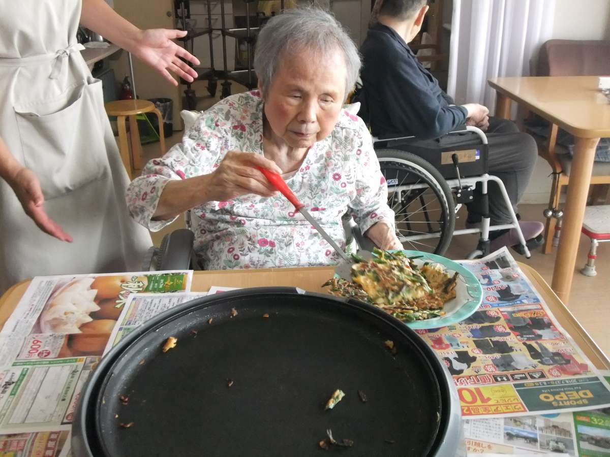 入居者様で材料を切ったり・混ぜたり・焼いたりと楽しく調理しました(*^_^*)