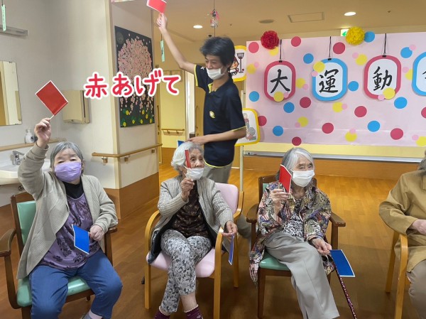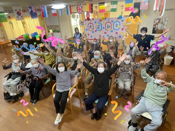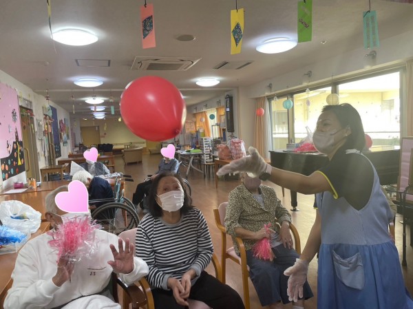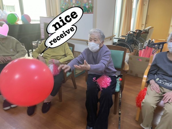 職員さんがフォローしながら、皆さま風船を落とさないように