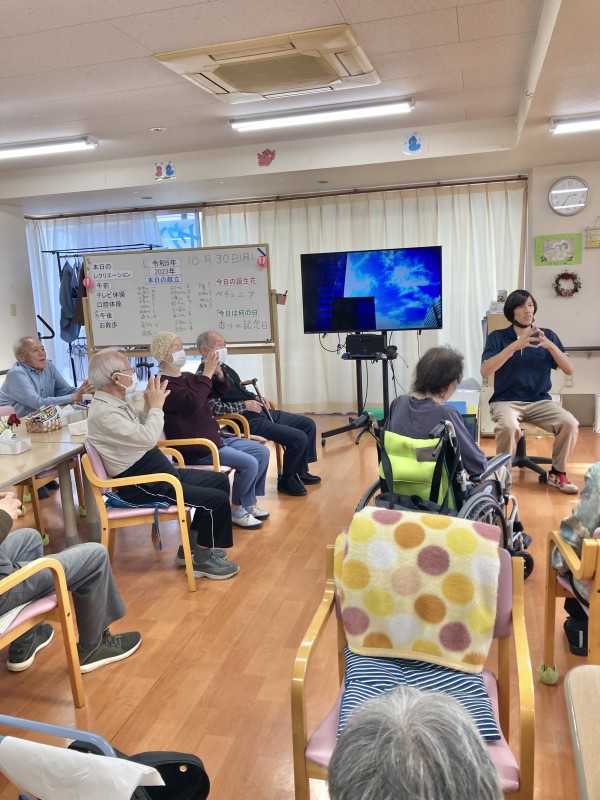 少し早いですが、11月の歌「ちいさい秋みつけた」「埴生の宿」を皆で歌いました。