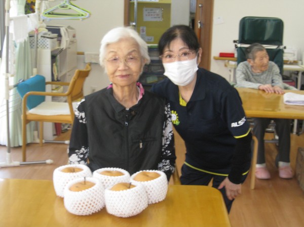 こんにちは! グループホームみんなの家・あきがせの介護ブログです! よろしくお願いいたします。今日はご家族様から梨の贈り物がありました。そのご様子をお知らせいたします!