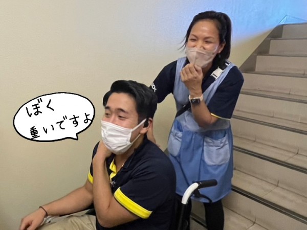 体格の良い利用者様もいらっしゃるので、良い訓練になりますね。