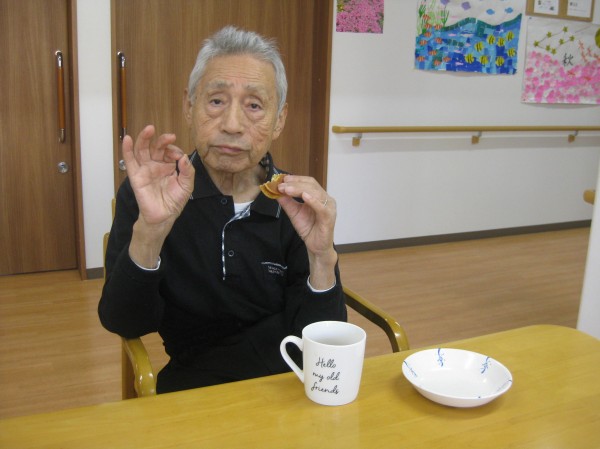 持って来られたお菓子を召し上がられています。美味しいです(*^_^*)とのことです!!