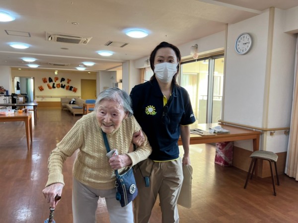 そこへ、おやつを食べ終わった100歳様がやって来ます。