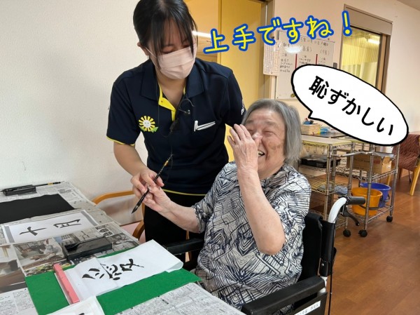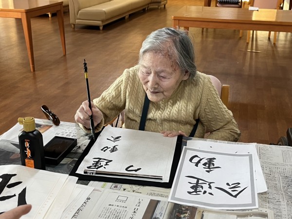 いつも、朗らか笑顔の100歳様は、書す時も笑顔。