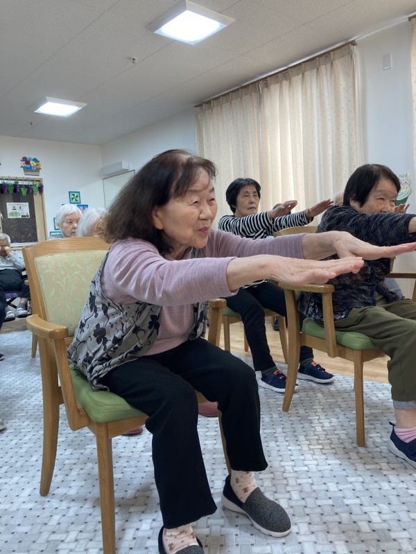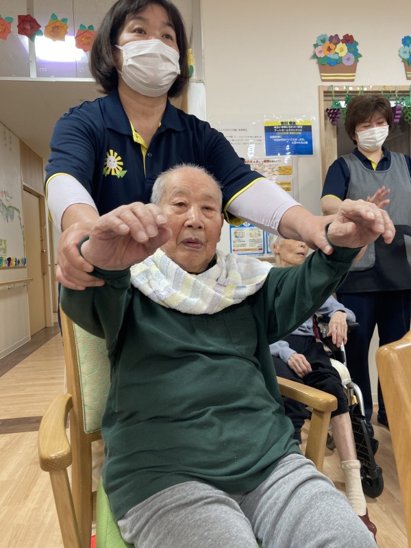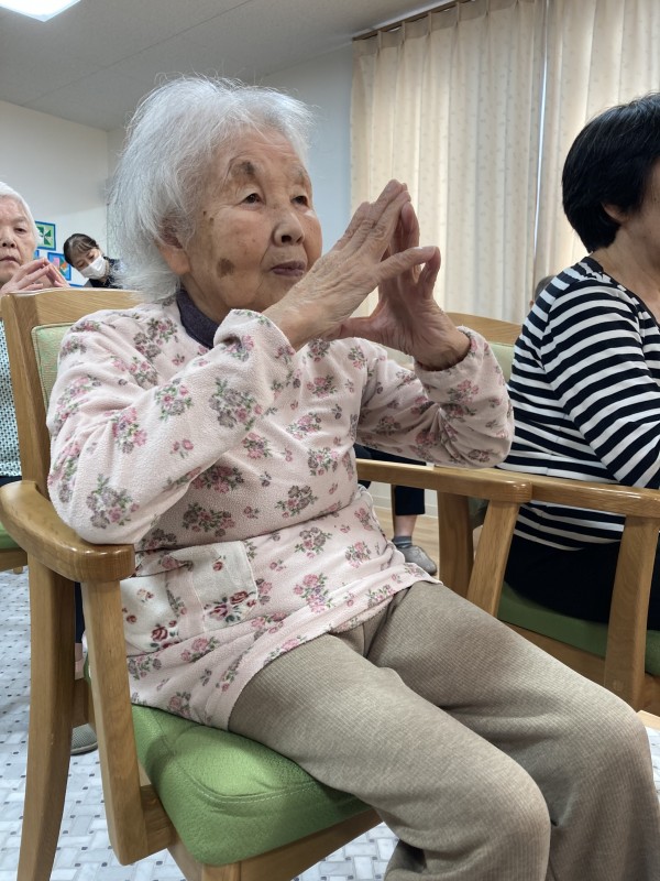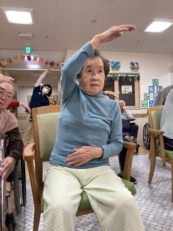 いつものいきいきリズム体操の他に、先月の運動会で行ったジェンカのリズムに合わせて今回も手足を使い体操しました!スピードがあり皆さん少し苦労されていましたががんばりましたね〜(^o^)!