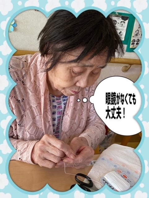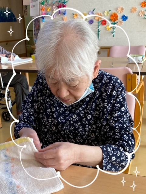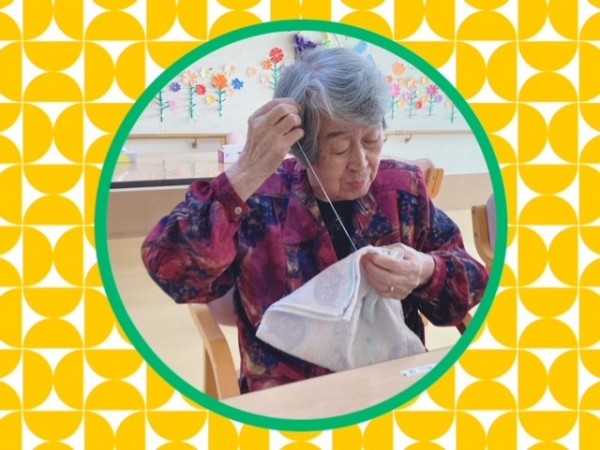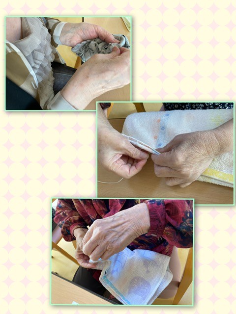 先日、3階のみなさまに雑巾を縫っていただきました。