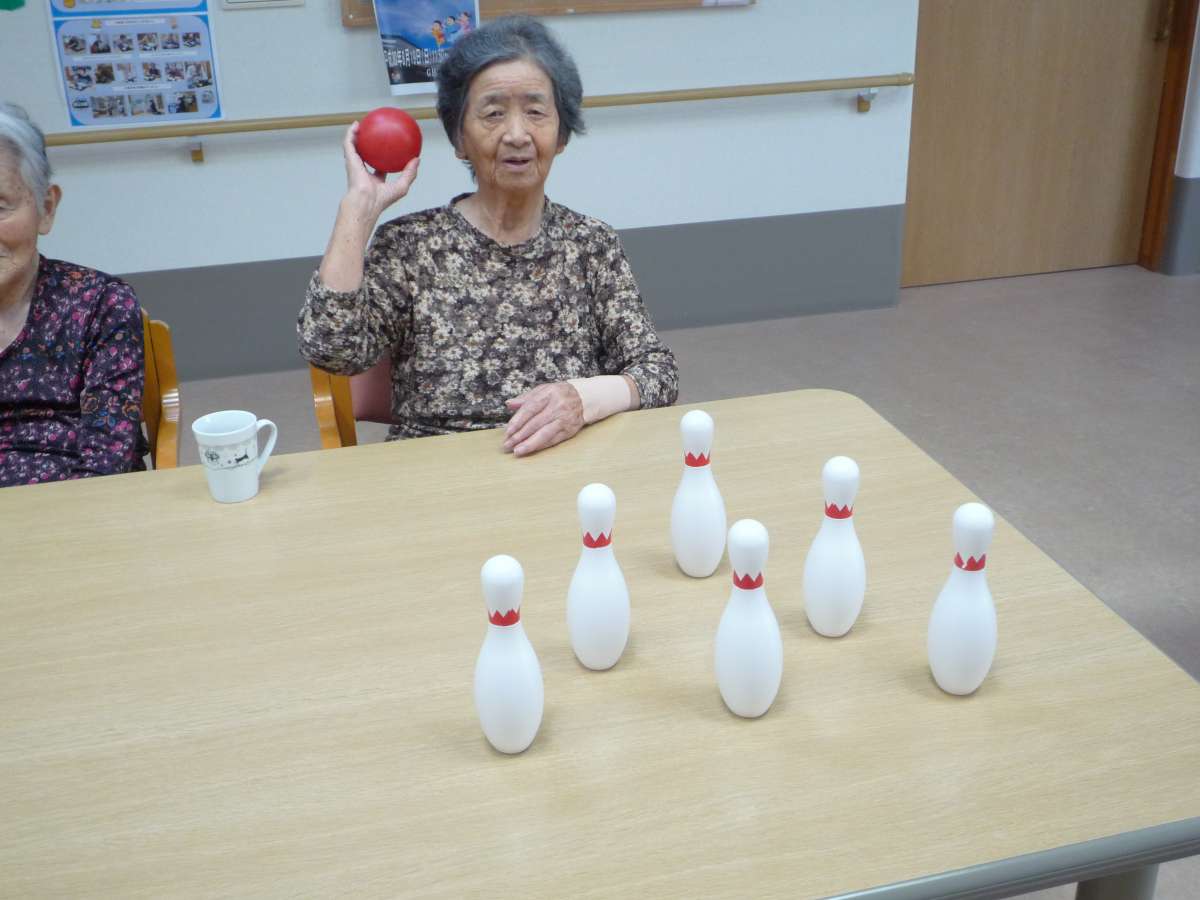 ボーリングは、足が悪い方でも座ったまま参加でき、腕の運動にもなります、うまくピンを倒された後は、利用者様も笑顔を見せてくださいました。