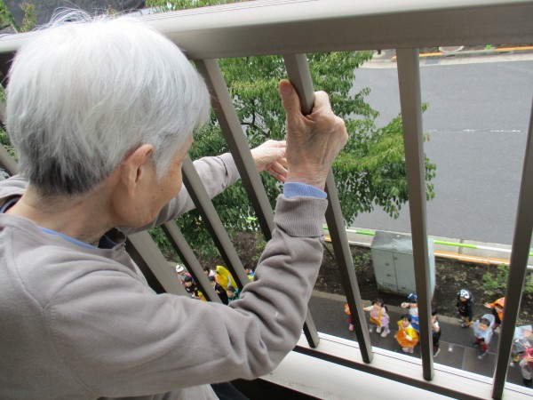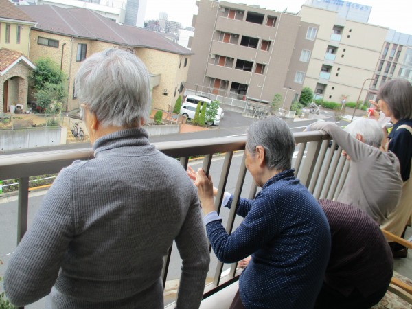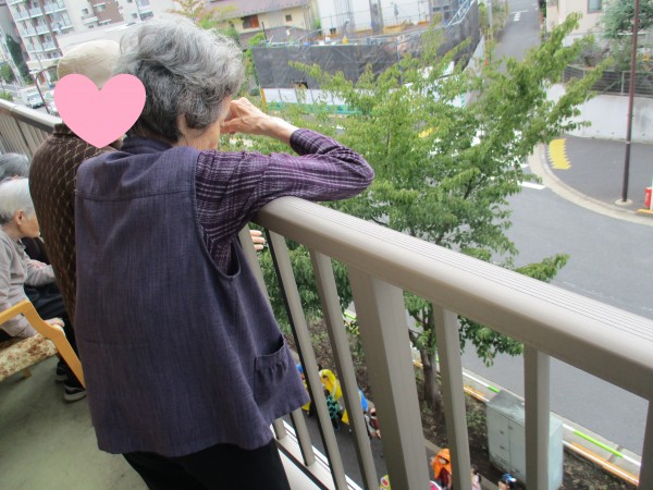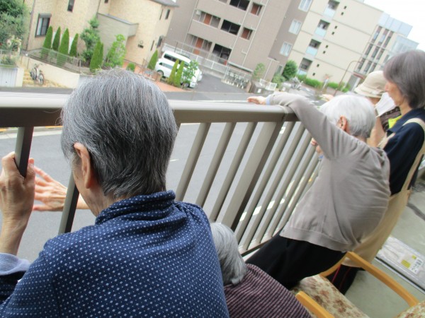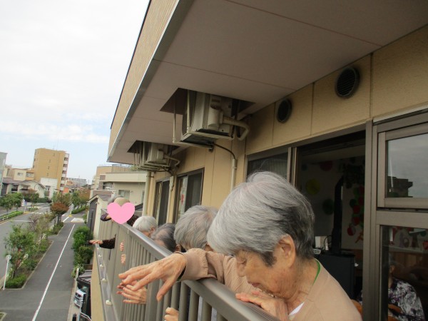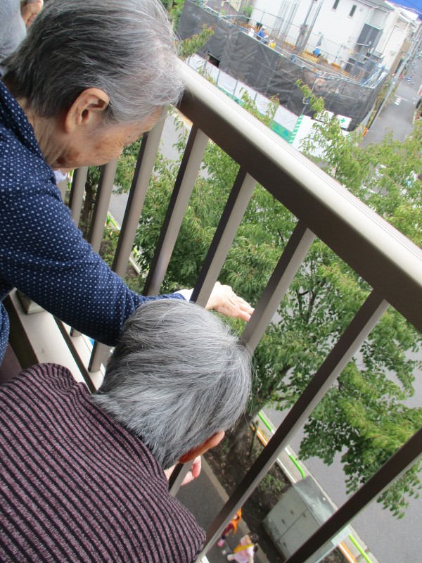私たちはベランダから手を振りましょう!