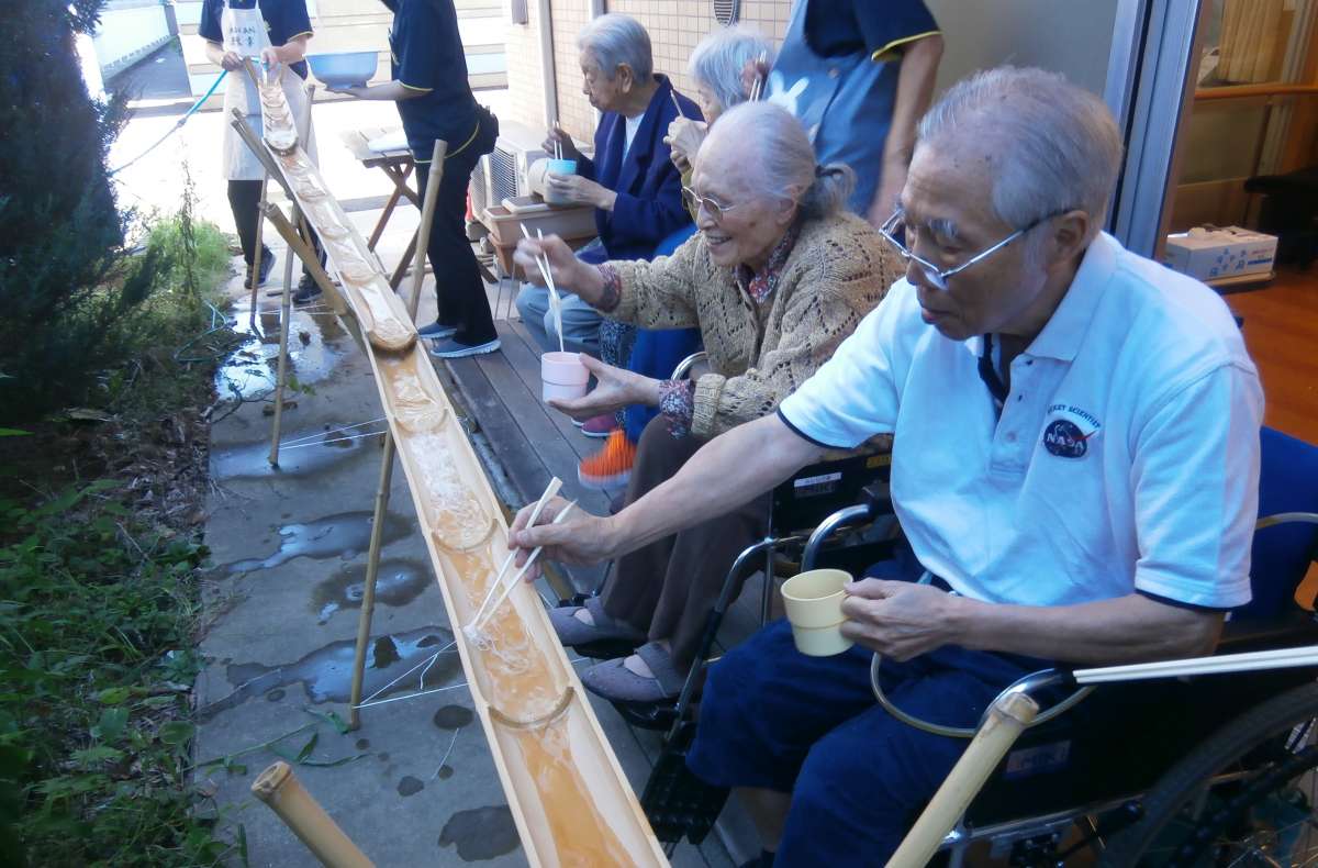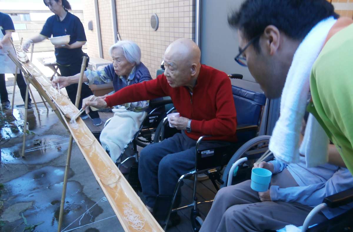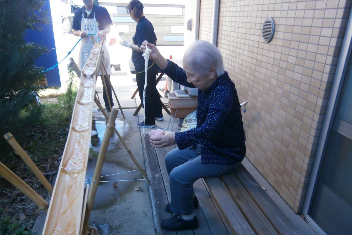 本日、食事イベントの一環として、「流しそうめん」を実施しました!!